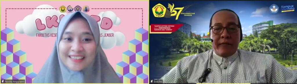 Acara Latihan Keterampilan Manajemen Mahasiswa Tingkat Dasar 2022 dimulai pada pukul 07.00 dengan kedatangan peserta ke room Zoom Meeting dan dilanjutkan pengisian formulir absensi kehadiran. Selanjutnya pembukaan acara pada pukul 07.15 oleh MC dan dilanjutkan dengan pembacaan doa dan pengambilan dokumentasi oleh panitia yang bertugas. Acara dilanjutkan dengan pemberian sambutan oleh Pemberian sambutan dilakukan di hari pertama kegiatan yaitu pada tanggal 9 April 2022 oleh Ibu Dr. Farida Wahyu Ningtyas, S.KM., M.Kes. selaku Dekan FKM UNEJ, dan Ibu Dr. Dewi Rokhmah, S.KM., M.Kes. selaku Wakil Dekan III. Pemberian sambutan hanya dilaksanakan pada hari pertama kegiatan yaitu pada hari Sabtu tangga 9 April 2022. Setelah pemberian sambutan, acara diambil alih oleh MC Informal . MC memandu acara dengan baik dan bersemangat sehingga dapat menghidupkan acara tersebut.